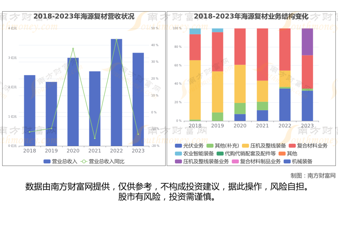 海源复材于2010年12月24日在深圳证券交易所上市,股票代码002529。公司主营业务为复合材料轻量化制品、新型智能机械装备、光伏电池及组件。